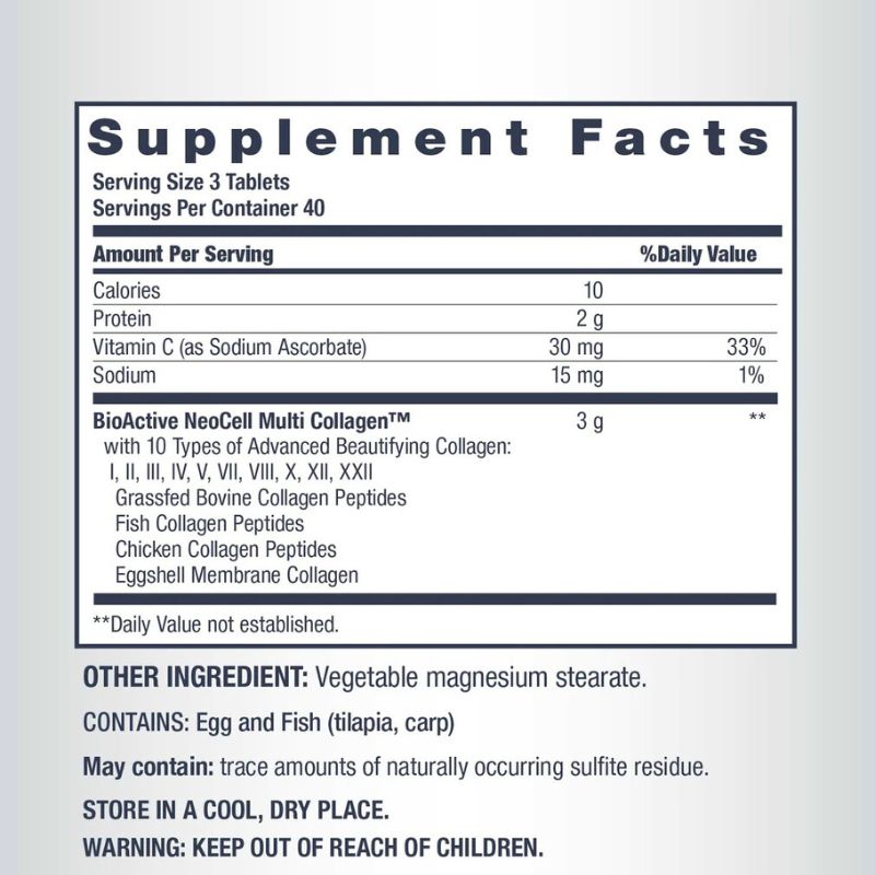 - Scientifically Formulated: As the #1 Collagen Tablet Brand, NeoCell uses a process that ensures these 10 types are highly bioavailable, meaning they are easier for your body to absorb and use immediately.