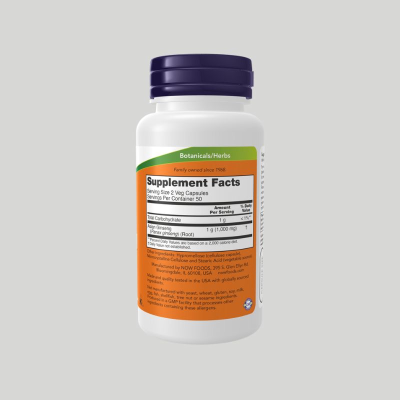 NOW Foods Panax Ginseng 500mg (100 Veg Capsules)